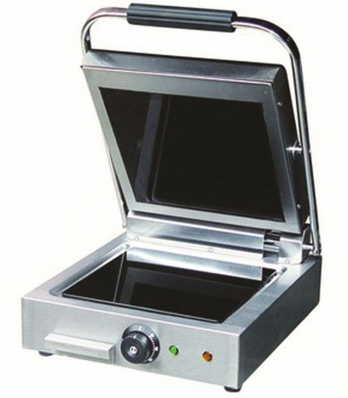 Высокая скорость приготовления достигается благодаря встроенным в обе части аппарата тепловым элементам, которые плотно прилегают к продукту. Корпус выполнен из нержавеющей стали.