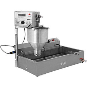 Пончиковый автомат с модернизированным приводом дозатора ПРФ–11/300AD торговой марки СИКОМ предназначен для приготовления пончиков во фритюре. Представляет собой комбинацию автоматического делителя–дозатора, оснащенный счетчиком с фискальной памятью, и фритюрной ванны. Имеет сменные плунжерные пары, позволяющие изготавливать пончики различных размеров.