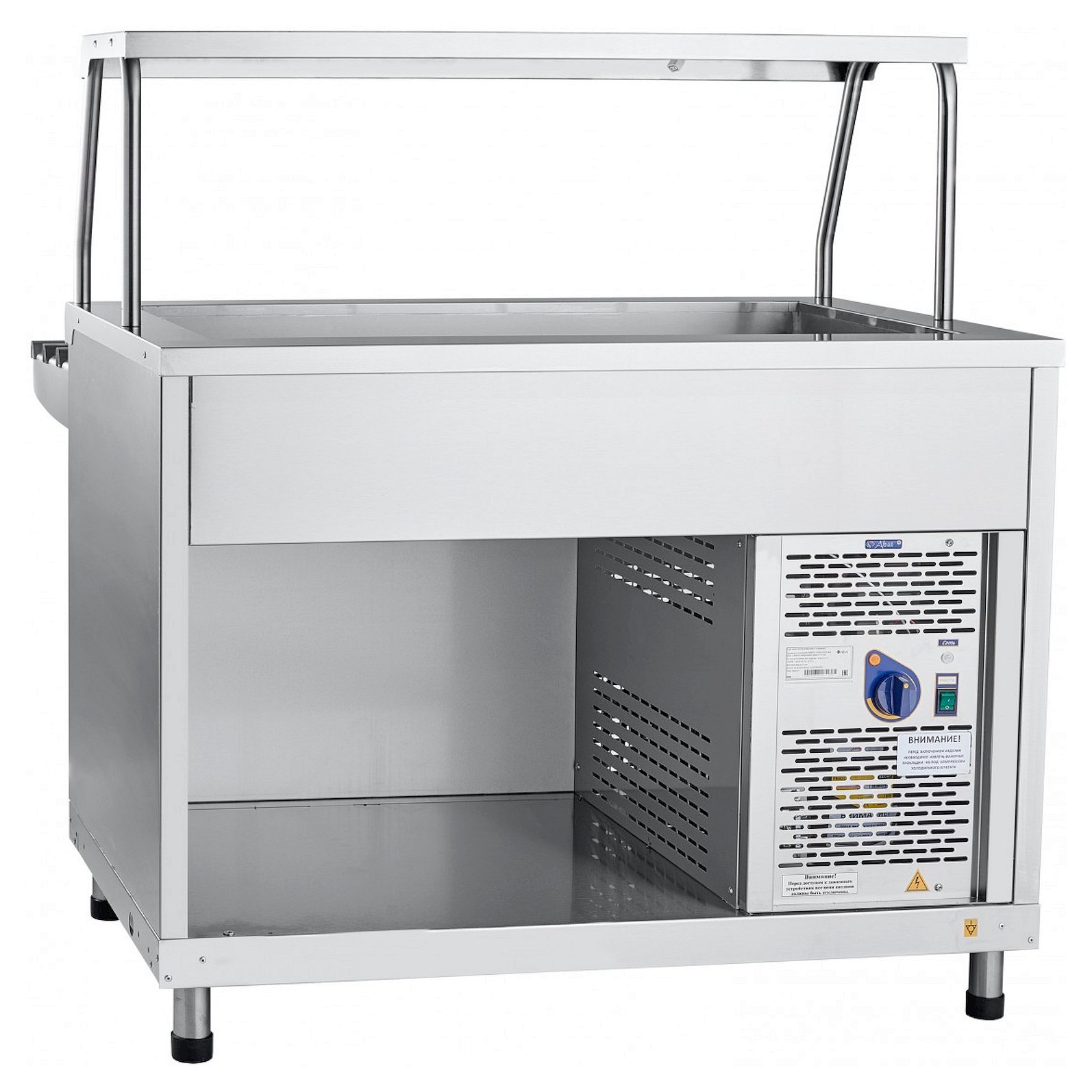 Охлаждаемая ванна прилавка имеет большую полезную площадь, удобна для выкладки напитков в бутылках, а ее поверхность легко подвергается гигиенической чистке. Размещенная полка над прилавком используется для выкладывания порций и напитков, не требующих охлаждения. Полка оснащена лампой подсветки.