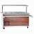 Размещенная над прилавком полка с лампой подсветки используется для выкладывания блюд и напитков, не требующих охлаждения, а нейтральный шкаф внизу можно приспособить для кухонного инвентаря. В комплект к прилавку входят складывающиеся с двух сторон направляющие для подносов и набор гастроемкостей для хранения салатов и холодных закусок.