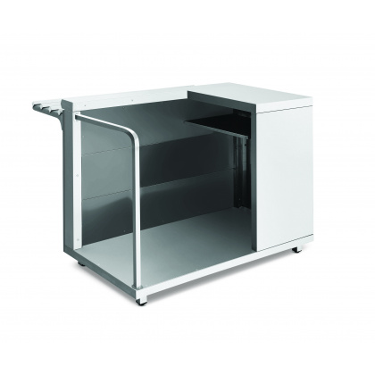 Прилавок кассовый универсальный Luxstahl КК-1200 Premium (нерж.) имеется дополнительная полка для размещения кассового аппарата, так же отверстие для прокладки кабеля. Есть возможность переставить угол с полкой на другую сторону.