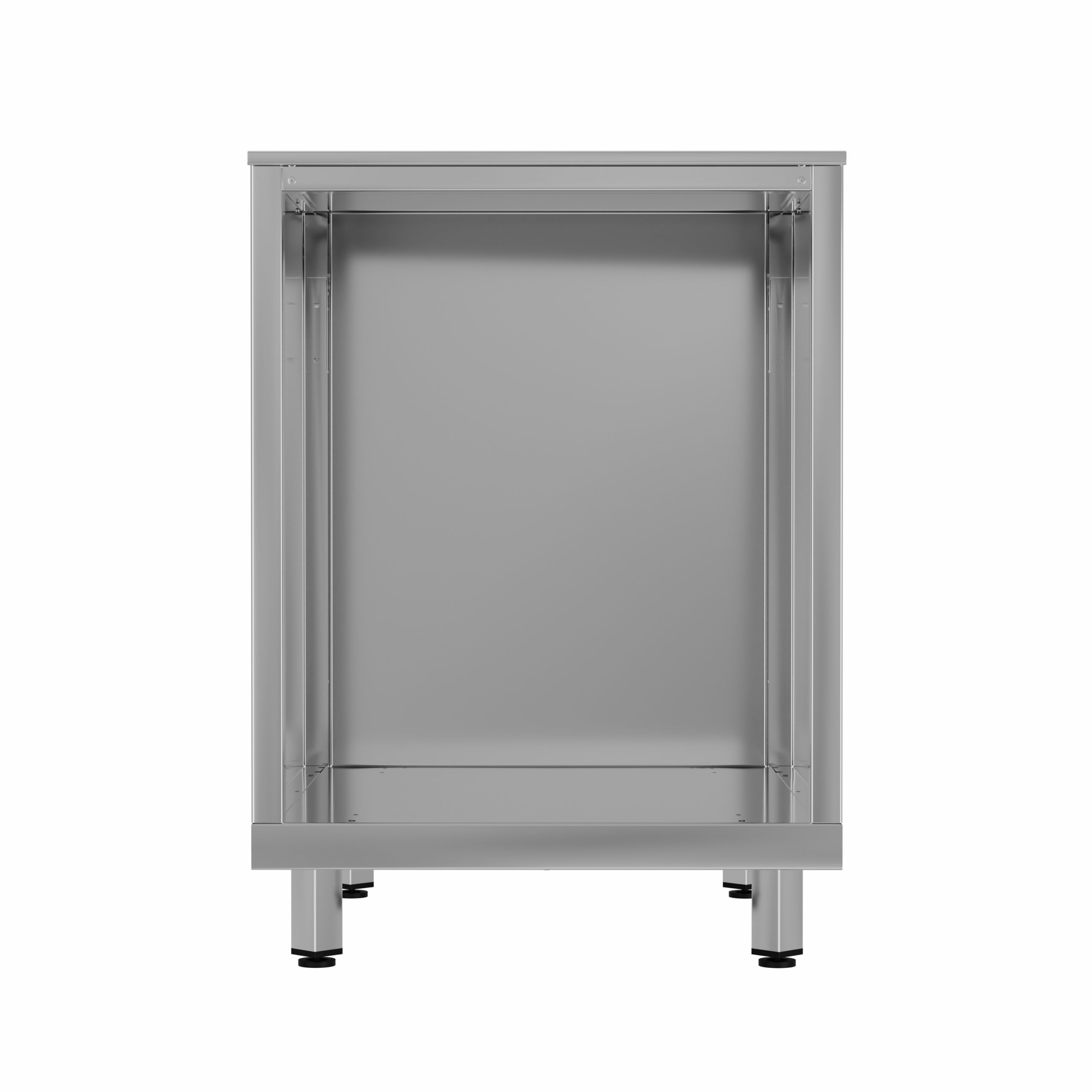 Прилавок изготовлен из нержавеющей стали AISI 304 и имеет регулируемые по высоте ножки.