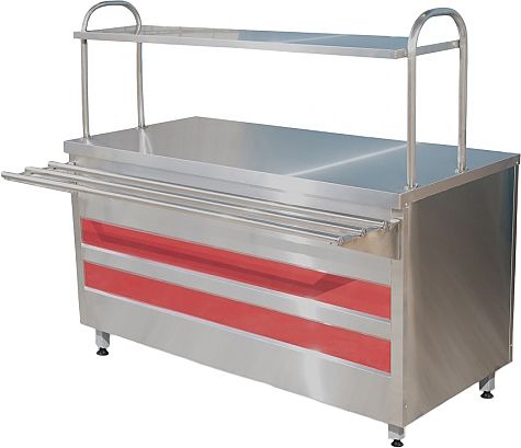 Прилавок нейтральный Онега МЛОЭ/ПН/11 (1100*720(1030)*1350) используется в составе линий раздач на предприятиях общественного питания и торговли для демонстрации и кратковременного хранения продуктов питания, готовых блюд, напитков и посуды. Модель оснащена розеткой, полкой и направляющими. Корпус, направляющие и полка выполнены из нержавеющей стали.