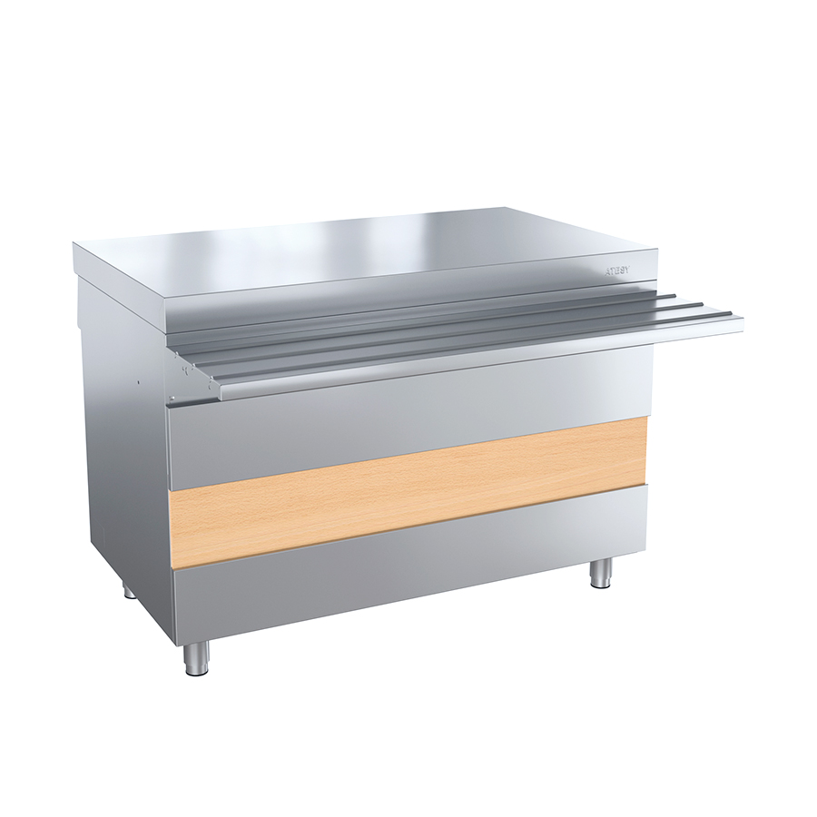 • Отсек для хранения посуды и инвентаря, оснащенный полкой и 2 дверями-купе, со стороны обслуживающего персонала в нижней части модуля