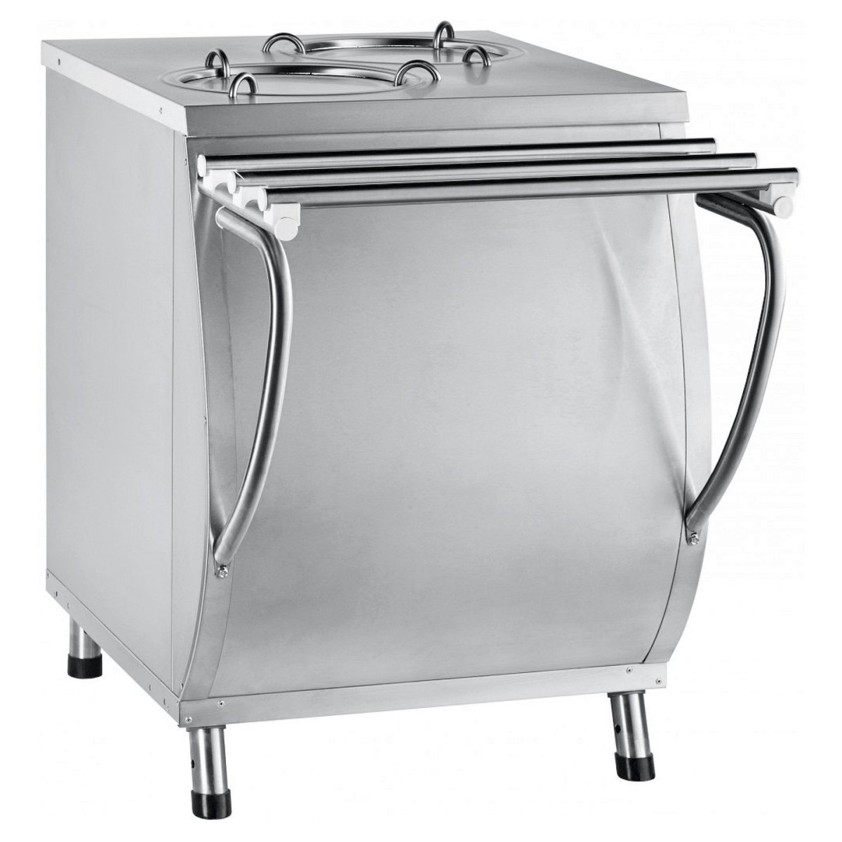 Удобство использования прилавка для подогрева тарелок обеспечивает пружинный механизм подъема тарелок, который поддерживает наличие верхних тарелок на уровне столешницы. Ножки прилавка регулируются по высоте.