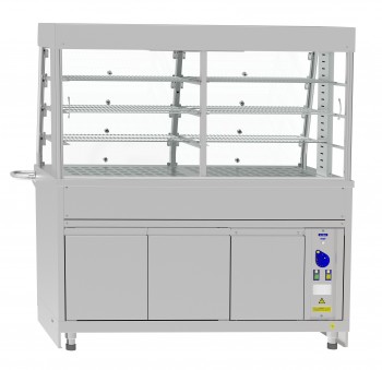 Прилавок-витрина Abat ПВТ-70Х-01 тепловой, 1500 мм используется в составе линии раздачи HOT-LINE для демонстрации, подогрева, кратковременного хранения блюд, мелкоштучных хлебобулочных и кондитерских изделий, пищевых продуктов в функциональных емкостях и подносах, а также для раздачи их потребителю на предприятиях общественного питания и торговли. Модель оснащена терморегулятором и 3 лампами подсветки. Съемные панели выполнены из нержавеющей стали.