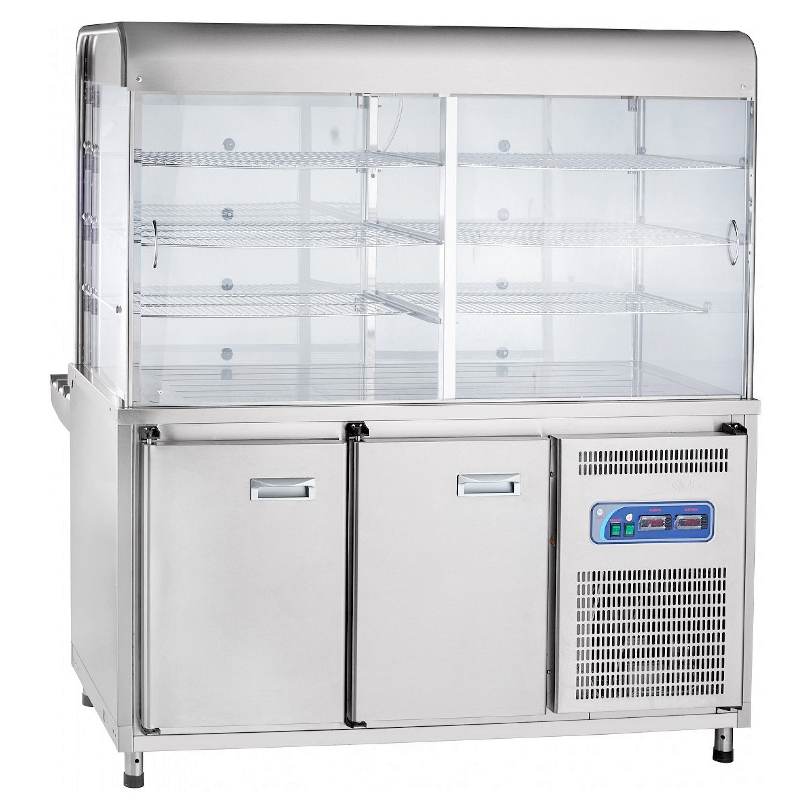 Закрытая охлаждаемая витрина прилавка-витрины имеет большую полезную площадь. Она используется для выкладки блюд и напитков. Прилавок-витрина оснащен лампой подсветки и принудительной циркуляцией охлажденного воздуха.