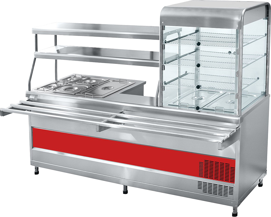 • Двойная полка над мармитом с подсветкой для выкладки блюд