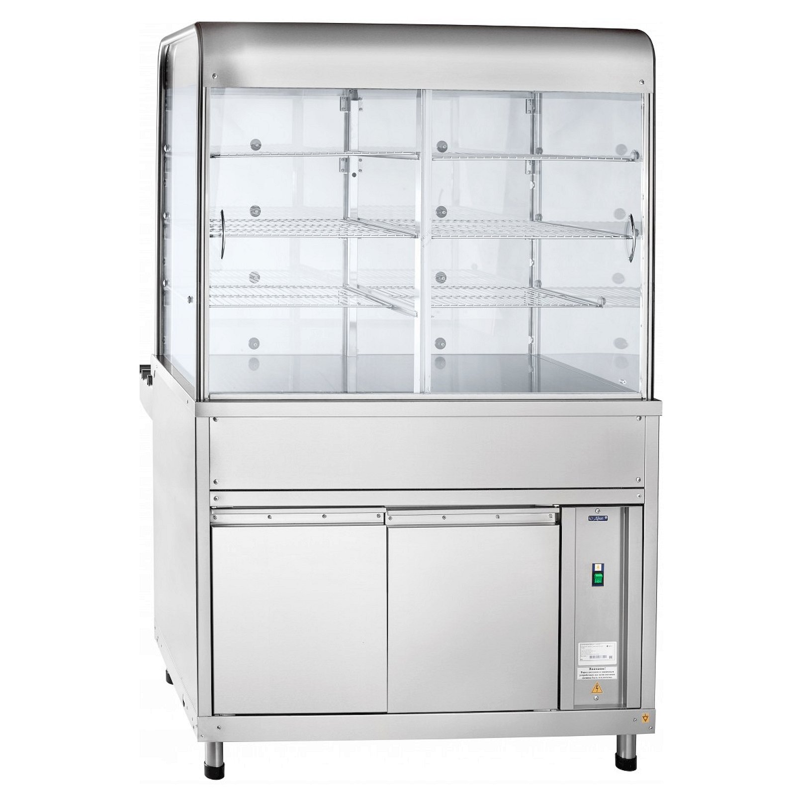 • Со стороны покупателя расположены поднимающиеся дверцы, обеспечивающие удобное извлечение блюд (со стороны персонала дверцы раздвижные)