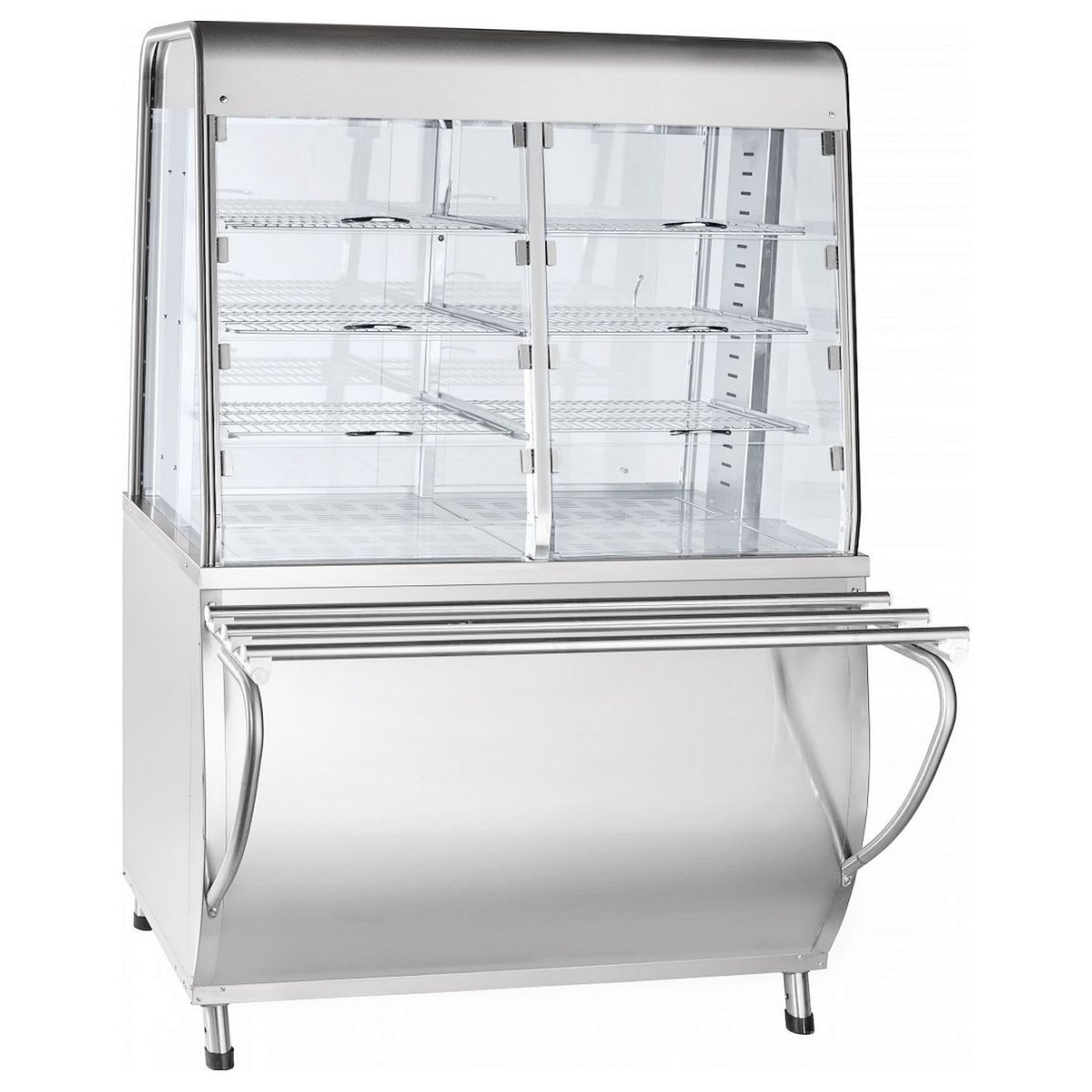 Внутреннее пространство прилавка-витрины обогревается теплым воздушным потоком или паром, который поступает из ванны, подогреваемой ТЭНами. В витрине прилавка установлен вентилятор, который равномерно распределяет воздух. Прилавок-витрина оборудован лампами подсветки и регулируемыми по высоте ножками.