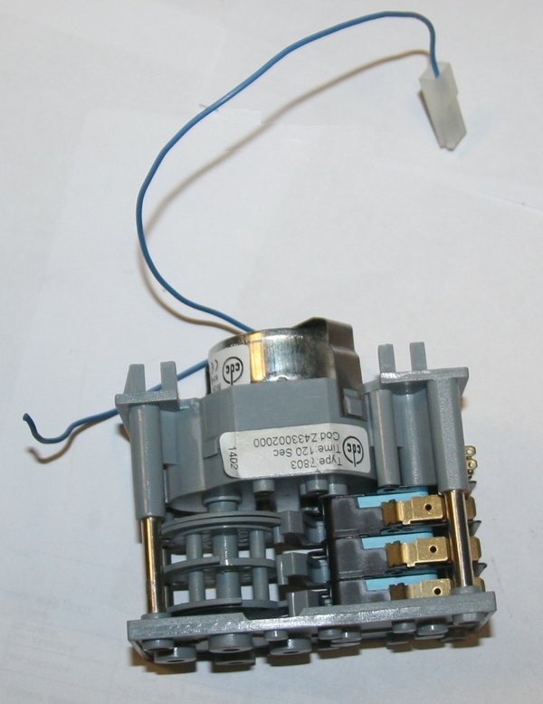 НАЗНАЧЕНИЕ ДЕТАЛИ: Программатор - электромеханическое устройство, предназначенное для формирования алгоритма режима работы устройства. Алгоритм реализуется в виде срабатывания пар независимых электрических контактов в функции времени, с привязкой к началу отсчёта. Представляет собой многопозиционный переключатель, перемещаемый элемент, которого приводится во вращение с помощью микродвигателя. Питание мотора осуществляется низковольтными напряжениями (12-24V) постоянного или переменного тока, в последнем случае, с частотой 50-60Hz.