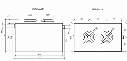 Диаметр / количество горловин, мм 630/200/2
