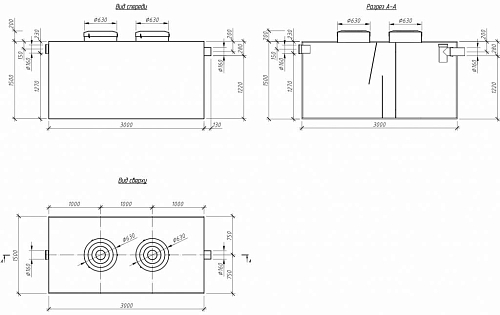 Модель оснащена герметичной крышкой с фиксаторами и устанавливается в технических помещениях, подвалах или подземно. Корпус выполнен из полипропилена.