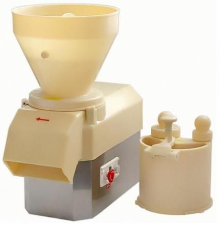 Модель оснащена приводом, приспособлениями для резки и для протирки с ротором.