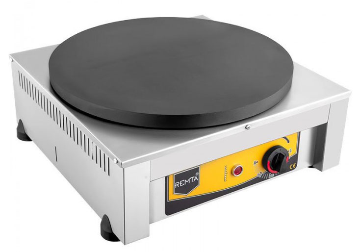 Remta KR 1 применяется для приготовления блинов на предприятиях общественного питания и торговли. Корпус выполнен из нержавеющей стали, жарочная поверхность имеет тефлоновое покрытие.