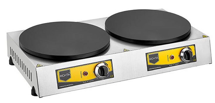 Remta KR 2 используется для приготовления блинов на предприятиях общественного питания и торговли. Корпус выполнен из нержавеющей стали, жарочная поверхность имеет тефлоновое покрытие.