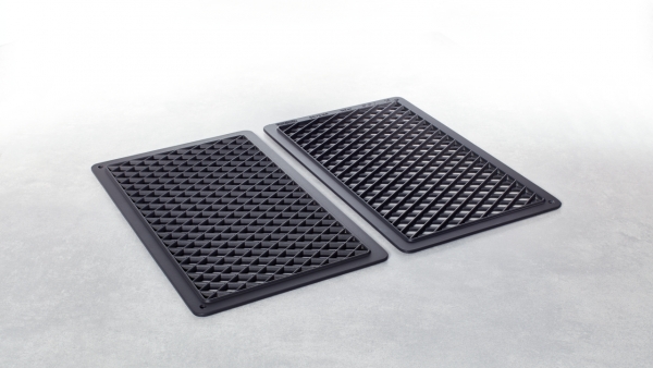 Два различных рисунка на стейках образуются перекрестными или продольными полосками. Обеспечивает хороший нагрев и отличное приготовление продукта, при эксплуатации не деформируется.