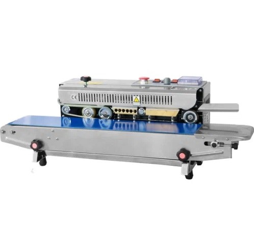 Роликовый конвейерный запайщик Hualian Machinery DBF-900W – модель роликового конвейерного запайщика серии DBF с горизонтальной подачей пакетов. Предназначен для непрерывного запечатывания пакетов из различных термосвариваемых материалов (как однослойных, так и многослойных), в том числе, достаточно плотных.