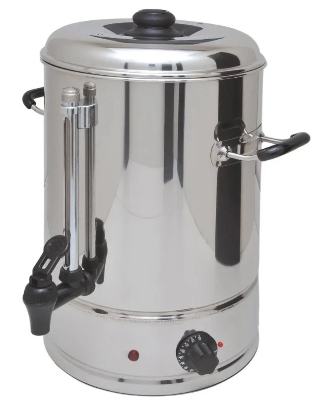 Кипятильник Rosso WB-30 используется для нагревания воды на предприятиях общественного питания. Аппарат оснащен индикатором уровня воды, терморегулятором и краном, предотвращим каплеобразование. Конструкция сделана из нержавеющей стали, верхняя крышка - из специального пластика.