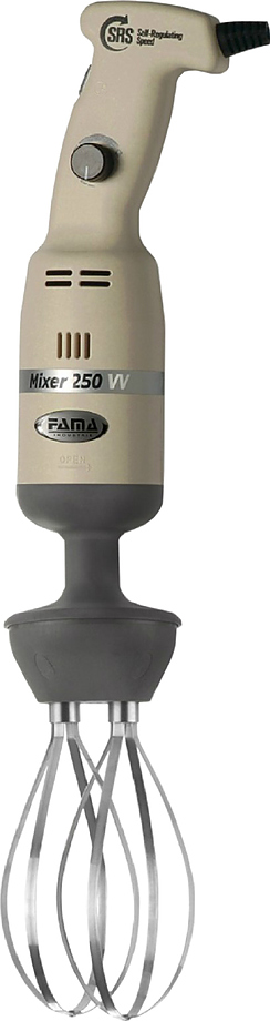 Ручной миксер Fama Mixer 250 VV Combi + насадка 250 мм предназначен для приготовления супов-пюре, майонеза, муссов, картофельного и овощного пюре, взбивания жидкого теста для блинчиков на предприятиях общественного питания и торговли.