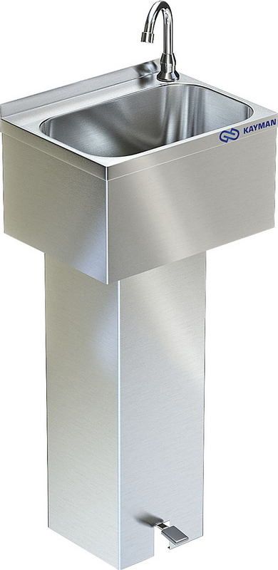 Рукомойник напольный Kayman РМН-400/320 используется на предприятиях общественного питания и торговли, а также в поездах дальнего следования. Модель оснащена педалью. Каркас выполнен из нержавеющей стали AISI 430, емкость - из нержавеющей стали AISI 304.