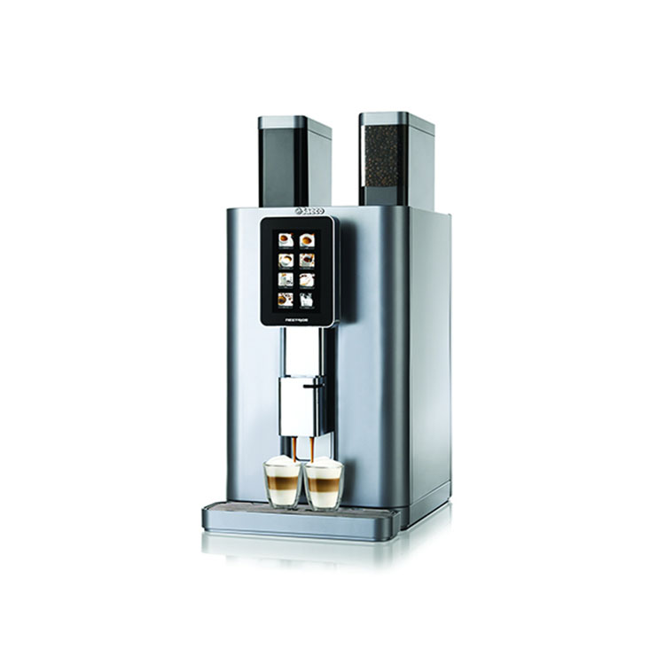 Оснащен 1 бункер для кофейных зерен и 1 бункер для растворимых ингредиентов. Горячая вода подается не из отдельного крана, а из центрального дозатора. Корпус полностью изготовлен из нержавеющей стали.