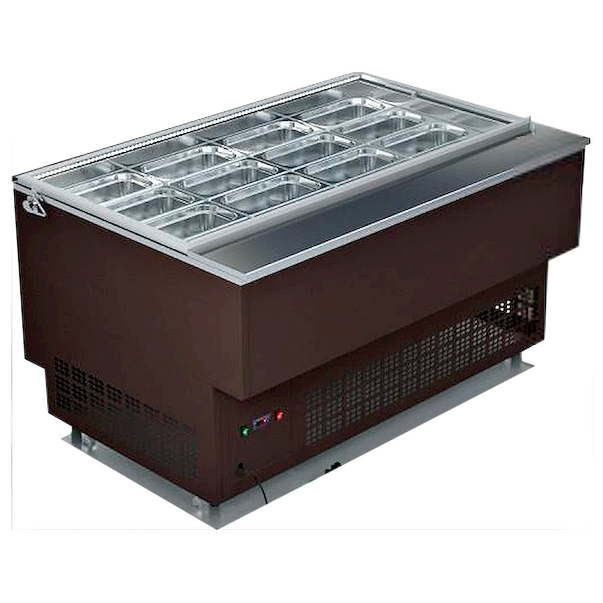 Модель со стеклянной крышкой позволяет избежать заветривания продукции, кроме того установленное на крышке светодиодное освещение улучшает внешний вид экспозиции для покупателя. Надежные пневматические доводчики обеспечивают мягкое, плавное опускание крышки и максимально плотное закрытие.