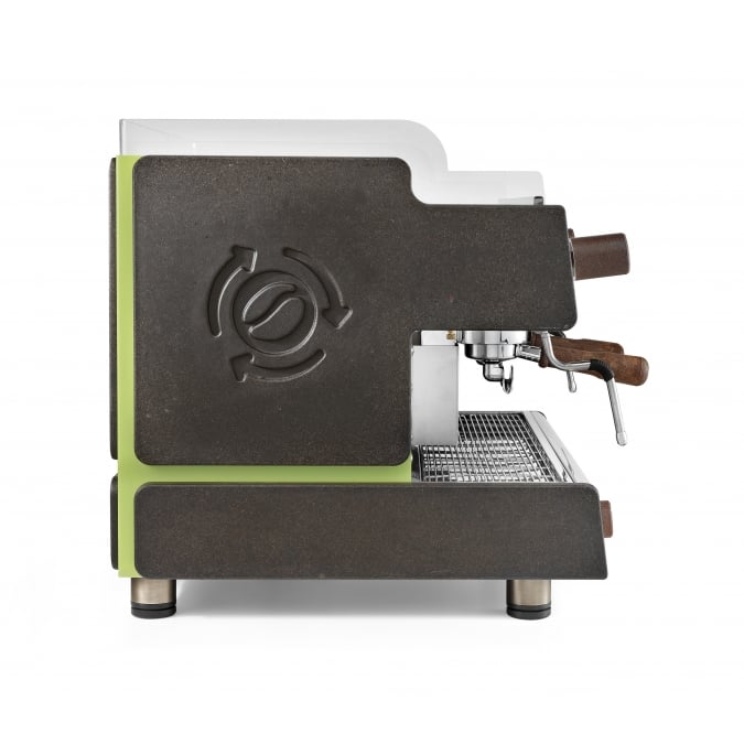 Яркий и свежий дизайн с панелями из кофейной гущи и на 100% натуральной смолы. Ручки холдеров и рукоятки настройки изготовлены из переработанных деревянных паллет.