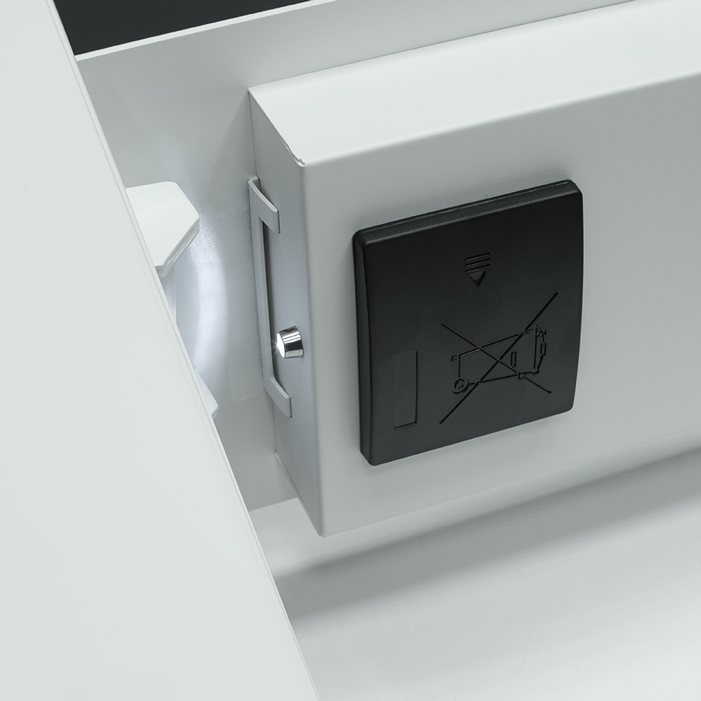 Сейф Meyvel SF5-430-195 (white) предназначен для безопасного хранения документов и различных ценностей в гостиницах, отелях, офисах, квартирах и загородных домах. Модель оснащена сенсорной клавиатурой, дисплеем и внутренней подсветкой. Корпус выполнен из стали.