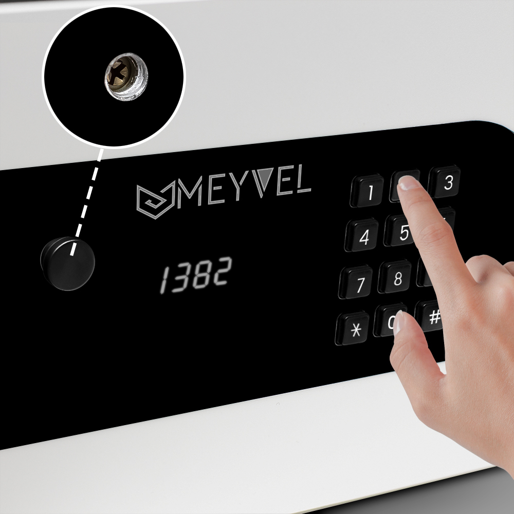 Сейф Meyvel SF8-430-195 (white) предназначен для безопасного хранения документов и различных ценностей в гостиницах, отелях, офисах, квартирах и загородных домах. Модель оснащена электронной клавиатурой, белым дисплеем и внутренней подсветкой. Корпус выполнен из стали.