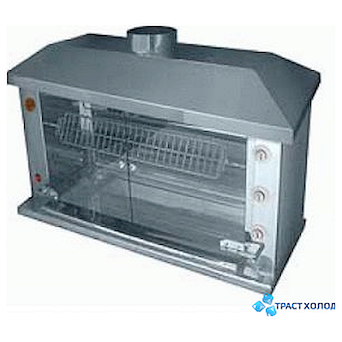 Шампурный газовый гриль Гриль Мастер Ф3У1Г применяется в супермаркетах, ресторанах, кафе и других заведениях общепита для поджаривания окорочков, грудок и куриных тушек. Модель оснащена 3-мя горизонтальными шампурами, максимальная вместительность которых 12 тушек.  Шампура вращаются около 2-х газовых горелок, что обеспечивает равномерное приготовление птицы. Преимущество модели достигается наличием системы газ-контроль. Внутренняя камера гриля имеет подсветку и стеклянные дверцы, выполненные из высококачественного термостойкого стекла. Стеклянные дверцы привлекают внимание покупателей. Корпус и все элементы гриля - нержавеющая сталь.  Корпус может быть выполнен в разных цветовых исполнениях.