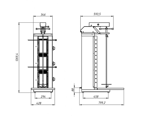 • Рабочая длина вертела 810 мм