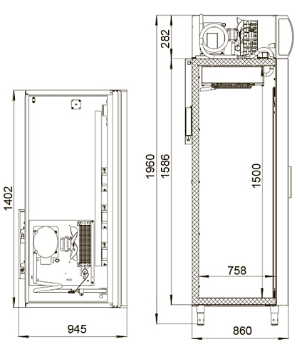 Цельнозаливной корпус с обшивкой из стали с полимерным покрытием (снаружи и изнутри) гарантирует надежную термоизоляцию, прочность и долговечность шкафа, а также высокие гигиенические свойства.
