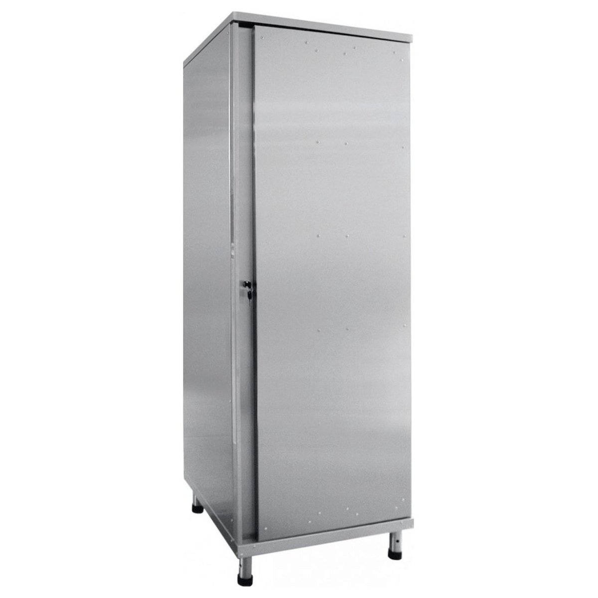 Сверху имеется полка для головных уборов, снизу полка для обуви. Имеет перекладину для вешалок. Ножки шкафа регулируются по высоте. Шкаф имеет разборную конструкцию. Шкаф полностью изготовлен из нержавеющей стали.