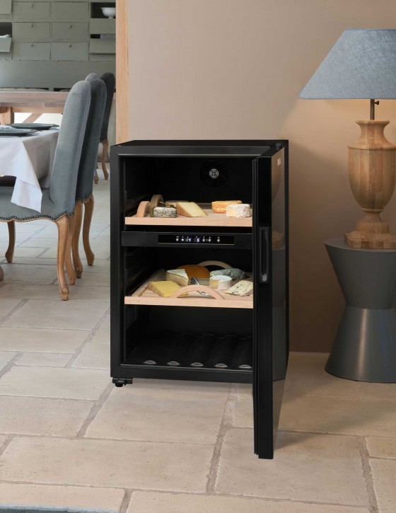 Шкаф для хранения сыра La Sommeliere CAF52 имеет две температурные зоны (объём верхней зоны - 70 л, объём нижней зоны - 98 л), что дает возможность правильно хранить сыры разных сортов.