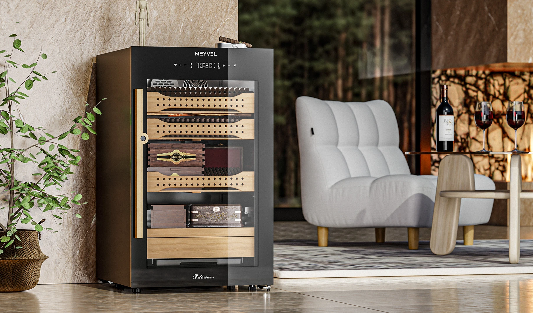 Шкаф для сигар MEYVEL MC-120BK (PRO) — роскошное решение для ценителей сигар. Устройство премиум-класса поражает своим впечатляющим внутренним объемом 113 литров, способным вместить до 850 сигар.
