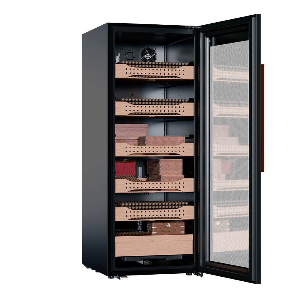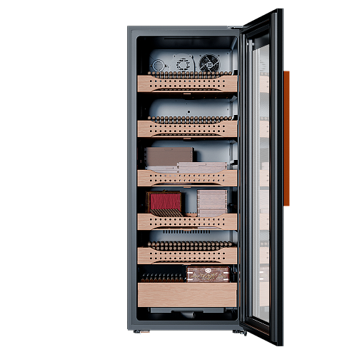 Продуманная конструкция и передовые технологии обеспечивают идеальные условия для хранения и созревания табачных изделий. Точный температурный контроль в диапазоне от +16 до +22°C и поддержание влажности на уровне 60-75% гарантируют сохранность коллекции в оптимальном состоянии. Встроенный гигрометр и внутренняя подсветка упрощают мониторинг и обзор содержимого.