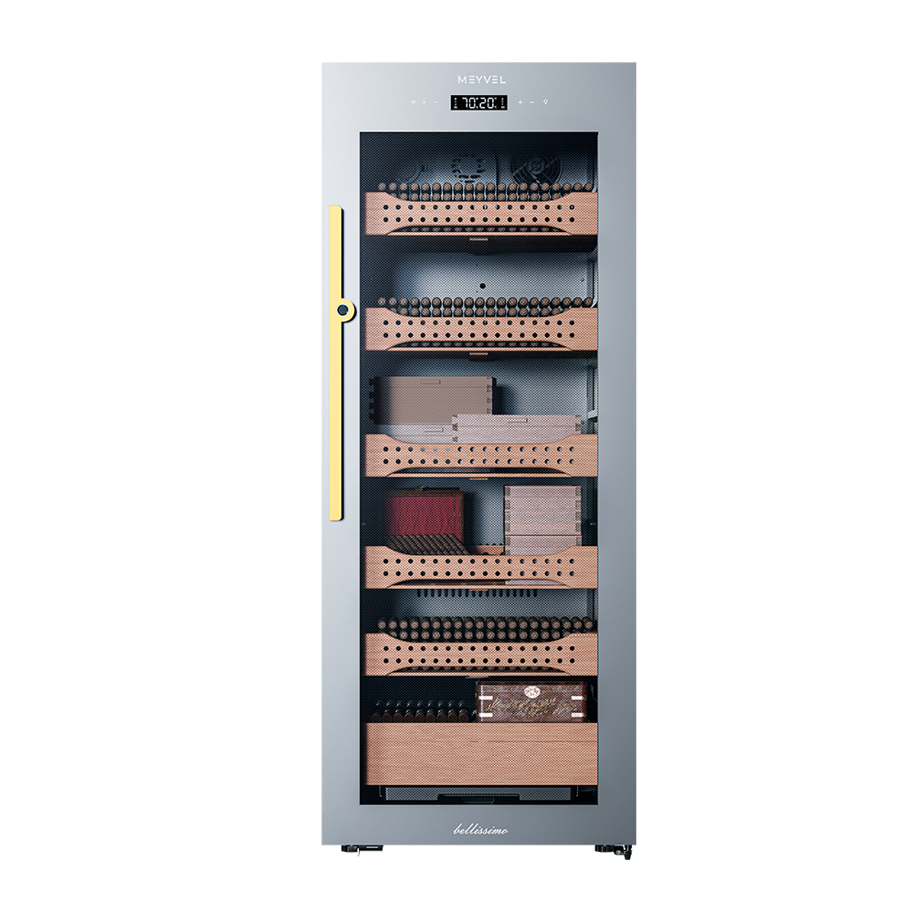 Шкаф для сигар MEYVEL MC-200BK (PRO) — роскошное решение для ценителей сигар. Устройство премиум-класса поражает своим впечатляющим внутренним объемом 200 литров, способным вместить до 1200 сигар.