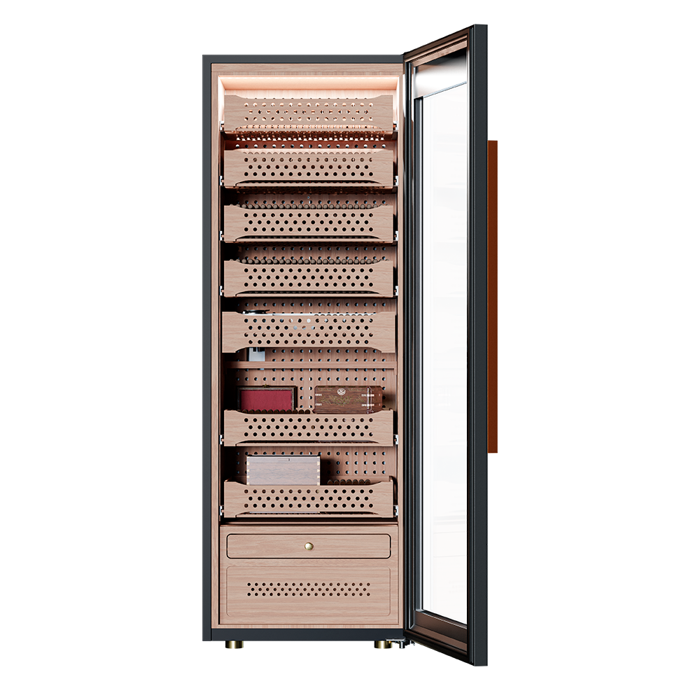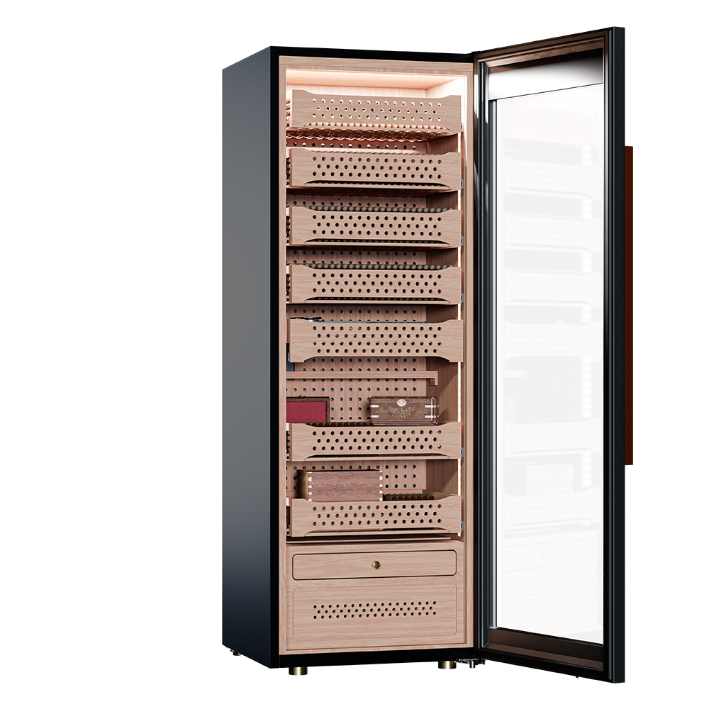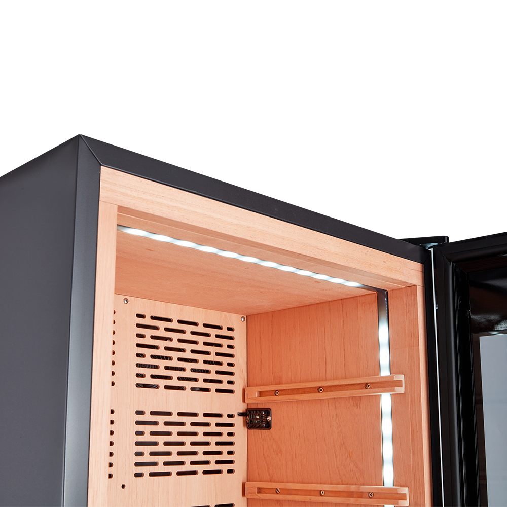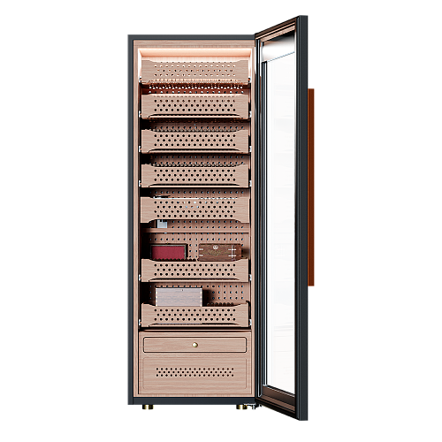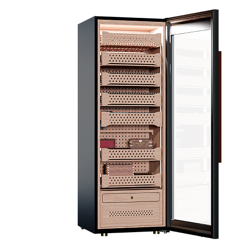 Продуманная конструкция и передовые технологии обеспечивают идеальные условия для хранения и созревания табачных изделий. Точный температурный контроль в диапазоне от +16 до +22°C и поддержание влажности на уровне 60-75% гарантируют сохранность коллекции в оптимальном состоянии. Встроенный гигрометр и внутренняя подсветка упрощают мониторинг и обзор содержимого.