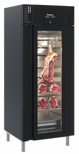 Шкаф холодильный Полюс M700GN-1-G-MHC 9005 применяется для демонстрации, охлаждения и кратковременного хранения деликатесов, колбас, сыров и мяса на предприятиях общественного питания и торговли. 4 полки-решетки, дверь со стеклопекетом, доводчиком и встроенным замком, регулируемыми ножками высотой от 150 до 170 мм и встроенной эргономичной ручкой.