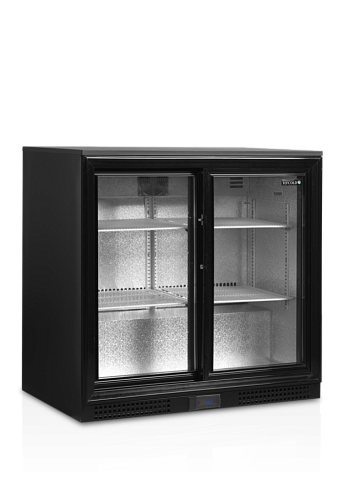 Шкаф холодильный со стеклом Tefcold DB201S черный предназначен для демонстрации, охлаждения и кратковременного хранения алкогольных и безалкогольных напитков на предприятиях общественного питания и торговли. Модель оснащена 2 самозакрывающимися раздвижными дверями, 4 регулируемыми решетчатыми полками и 4 регулируемыми по высоте ножками. Внутренняя обшивка выполнена из рельефного алюминия, двери - из высокопрочного стекла с двойной рамой.