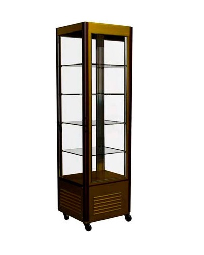 Модель оснащена 4-х сторонним остеклением, 4 полками-решетками, которые можно устанавливать на разные уровни, замком и регулируемыми колесами высотой 100 мм.
