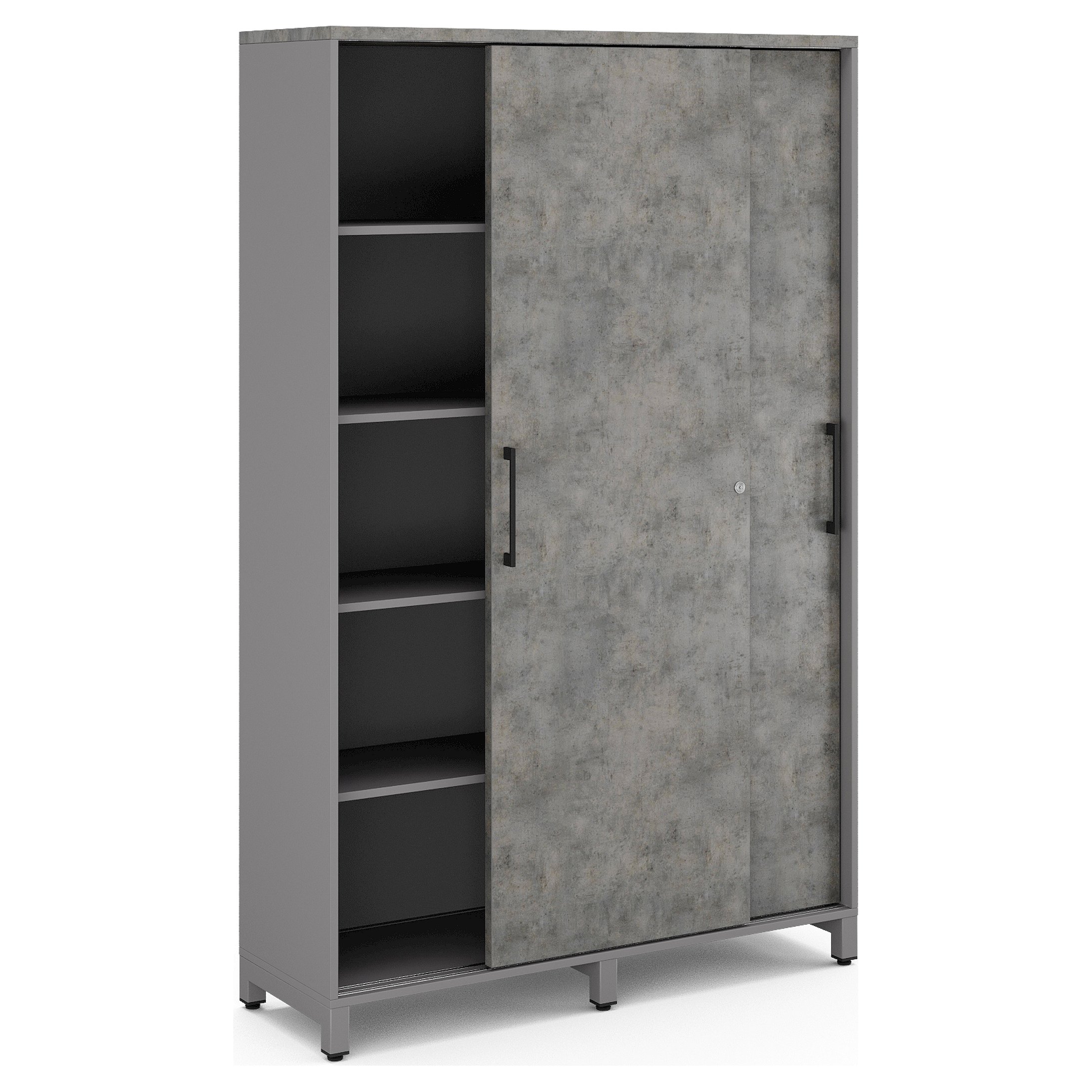 Шкаф-купе Kobor HK/5-120/60/M aluminum/chicago - компактное решение для эффективного хранения. Строгое сочетание цветов делает его идеальным решением для кабинета, переговорной или офисной прихожей.
