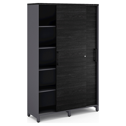 Шкаф-купе Kobor HK/5-120/60/M graphite/wood - компактное решение для эффективного хранения. Строгое сочетание цветов делает его идеальным решением для кабинета, переговорной или офисной прихожей.