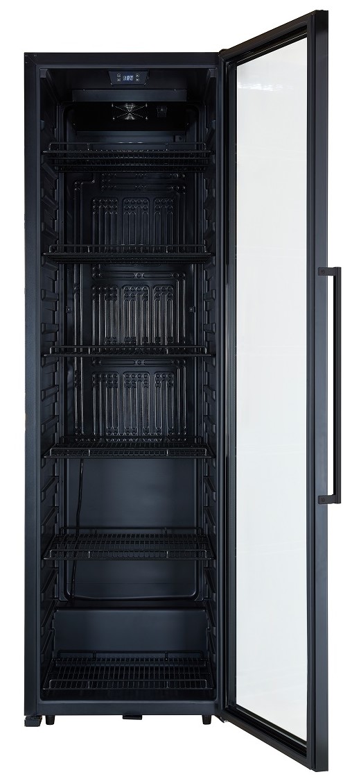 Постоянное проветривание обеспечивается бесшумными вентиляторами, установленными внутри камеры. Это позволяет избежать появления посторонних запахов и образования плесени. Cellar Private CP188AB оснащён 6 металлическими съёмными полками.