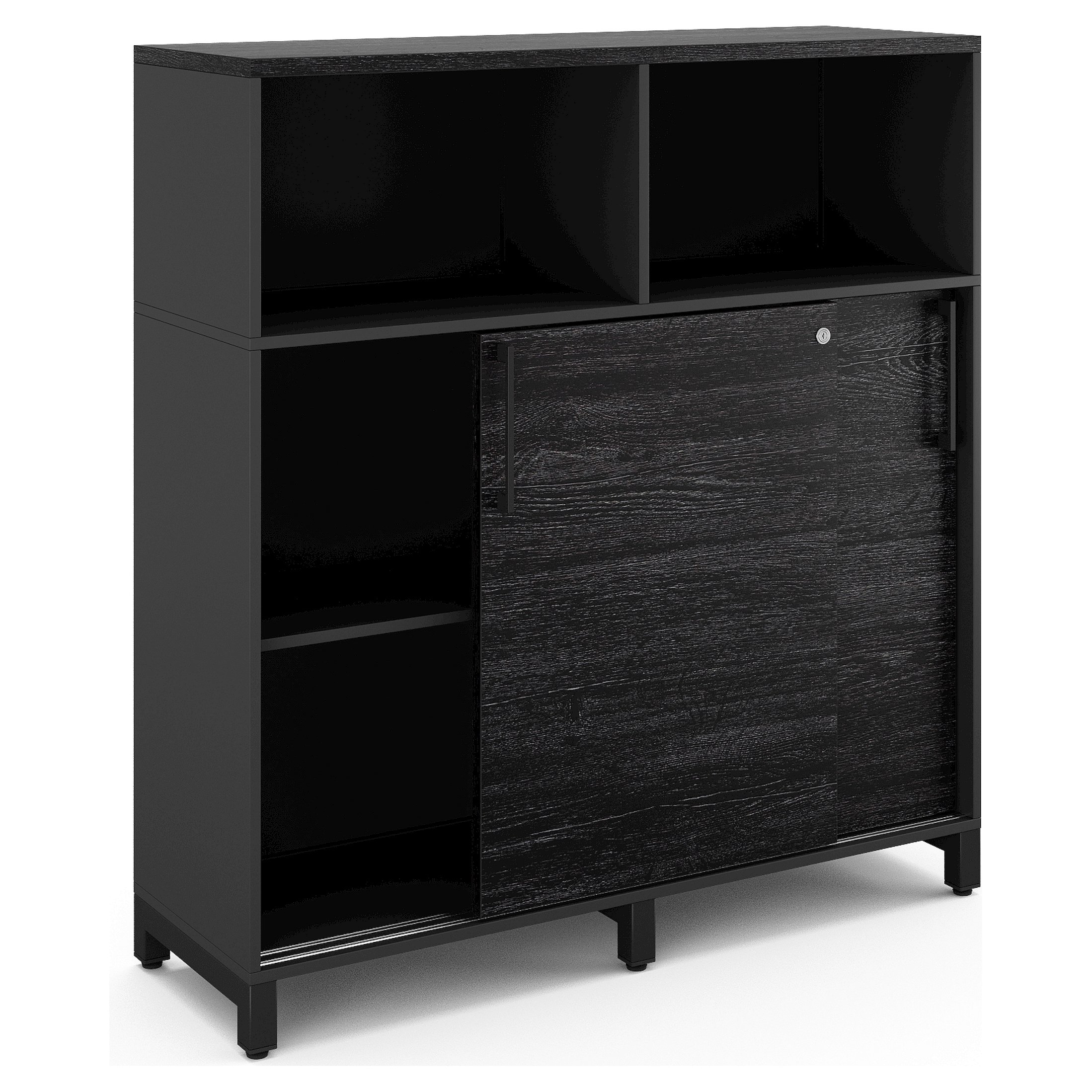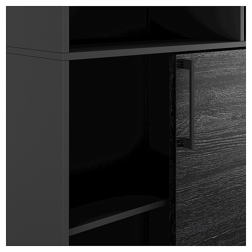 Шкаф открытый Kobor HK/2/1-120/40/M black/wood - cтильное и практичное решение для систем хранения. Открытый дизайн в комбинации цветов идеально подходит для зонирования пространства, хранения документов, литературы или демонстрации элементов корпоративного стиля.