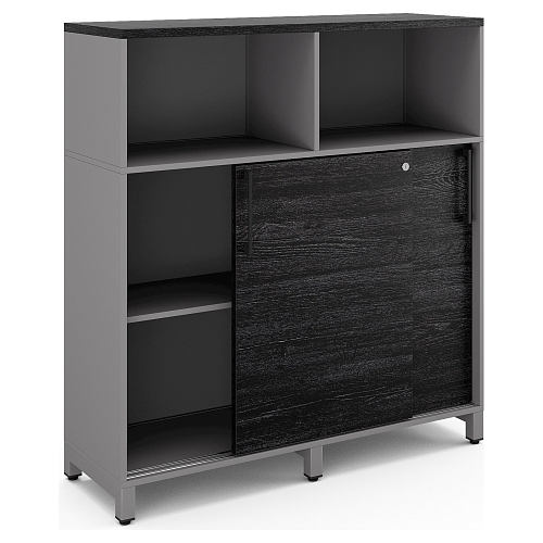 Шкаф открытый Kobor HK/2/1-120/60/M aluminum/wood - cтильное и практичное решение для систем хранения. Открытый дизайн в комбинации цветов идеально подходит для зонирования пространства, хранения документов, литературы или демонстрации элементов корпоративного стиля.