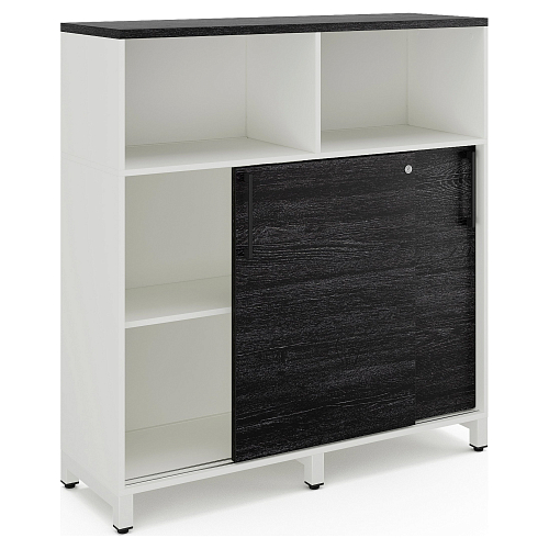 Шкаф открытый Kobor HK/2/1-120/60/M white/wood - cтильное и практичное решение для систем хранения. Открытый дизайн в комбинации цветов идеально подходит для зонирования пространства, хранения документов, литературы или демонстрации элементов корпоративного стиля.