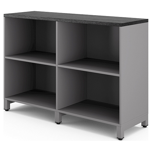 Шкаф открытый Kobor HO/2-120/60/M aluminum/wood - cтильное и практичное решение для систем хранения. Открытый дизайн в комбинации цветов идеально подходит для зонирования пространства, хранения документов, литературы или демонстрации элементов корпоративного стиля.
