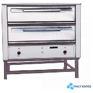 Шкаф пекарский электрический, 2-х секционный, (с раздельной регулировкой ТЭНов), черн. металл, дверцы оцинк.металл, разм.противней 450х650х20 (2шт в секции), производительность белых батонов 40 шт в час,температура до 300 градусов, напряжение 380В, мощность 10,4кВт, вес 340кг, размеры 1200х1040х1205мм, Торгмаш (Россия).